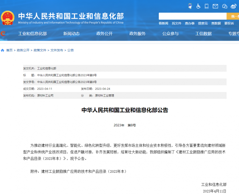 保温复合制品、气凝胶保温毡、玻璃棉制品等绝热节能材料列入《建材工业鼓励推广应用的技术和产品目录(2023年本)》